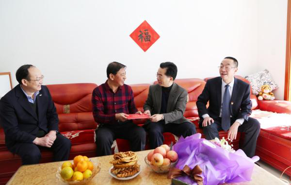 31日下午,缪总一行驱车近一小时,专程前往银川市永宁县病困员工朱玉峰家中看望慰问。缪总详细询问了朱玉峰同志病情和家庭生活情况,鼓励他一定要坚定信心,坚持治疗,争取早日康复。缪总高度重视基层员工的工作生活状况,叮嘱当地机构要加强对困难员工的关心,积极帮助纾困解难。在送去组织关怀和温暖的同时,缪总还代表集团公司党委为朱玉峰同志送上了慰问金及慰问品,并致以新春问候。