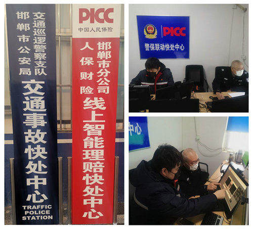 在河北邯郸,人保财险加大创新力度,主动联系邯郸市公安局交通巡逻警察支队,联合成立交通事故快处中心暨人保线上智能理赔快处中心,借助交警天网监控系统和人保视频查勘定损系统,为广大客户提供全流程交通事故线上化快速处理的线上“警保联动”新模式。