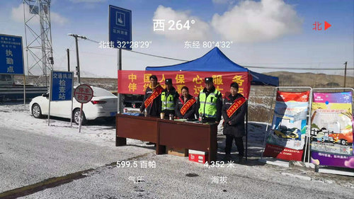 在西藏,318国道然乌至林芝段道路基本被暴雪覆盖,道路积雪最高达90cm,车辆通行困难,事故较多。人保财险林芝分公司与当地交警支队迅速组织,赶往现场,在海拔4724米的色季拉山顶设立“警保联动”服务点,协助过往被困车辆挂防滑链,为过往车辆随行人员提供食品、开水和事故救援等现场服务,受到当地群众的高度赞扬。
