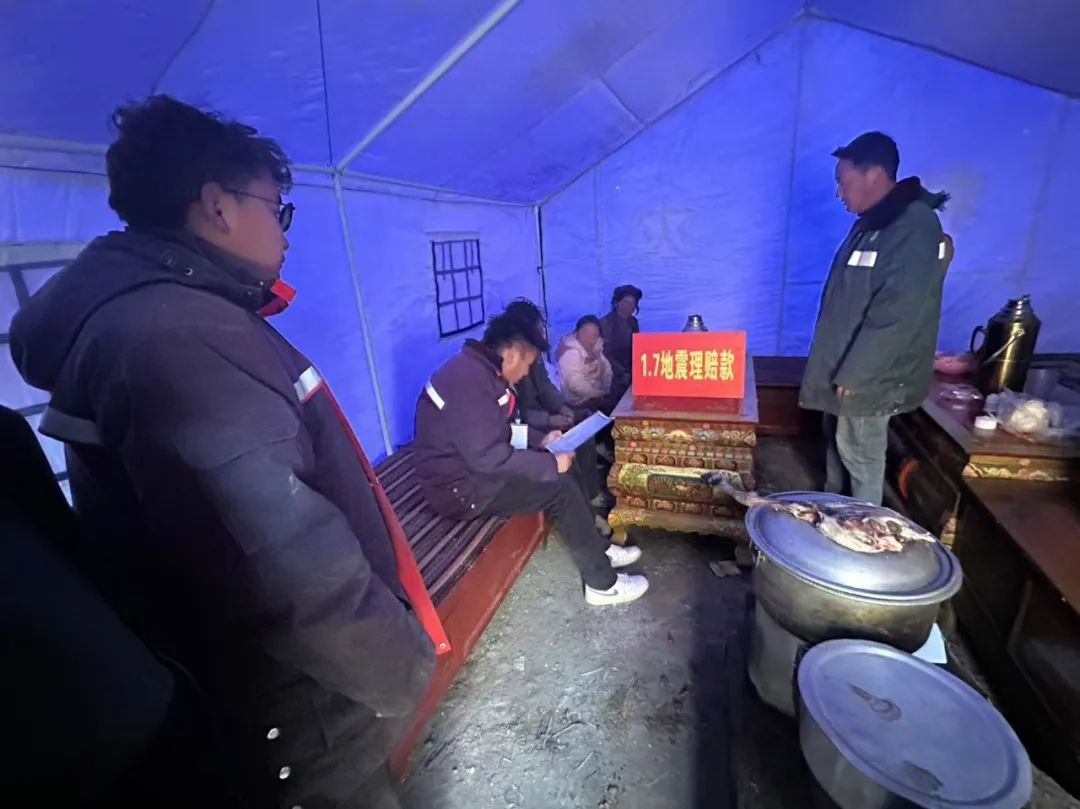 在集团党委的有力领导下,总省市县四级机构全面联动、高效集结、全力驰援抗震救灾。人保财险总公司党委班子成员带队紧急奔赴灾区现场指挥救灾理赔工作,在海拔4000多米的高原严寒条件下,深入受灾村落,实地察看灾情,听取受灾群众理赔需求,主动向各级政府汇报大灾理赔工作举措,优化预赔快赔服务方案,自觉充当政府抗震救灾“急先锋”。人保财险西藏分公司于地震发生的20分钟后立刻召开应急救援会议,成立应急工作领导小组和4个应急工作小组,第一时间面向社会发布《响应定日县地震八项服务承诺》,保证7×24小时服务渠道畅通;12小时内迅速完成西藏当地救援队伍集结,抽调118名理赔青年精干力量组成“党员突击队”,调集拉萨、那曲、山南、林芝分公司46名支援力量、14名客服保障人员及55辆理赔查勘救援车辆,组成大灾支援团队,集中赶赴震中村镇开展救援。24小时内从青海、四川、云南分公司迅速调度22名有玉树、汶川等抗震救灾经验和精湛保险理赔专业技能的青年业务骨干,组建跨省大灾支援队伍,昼夜兼程千里奔赴灾区,共克时艰。地震发生时,人保财险日喀则分公司党委书记、总经理次罗正在成都陪父母看病。看到地震新闻后,立即告别父母,克服交通困难往回赶。