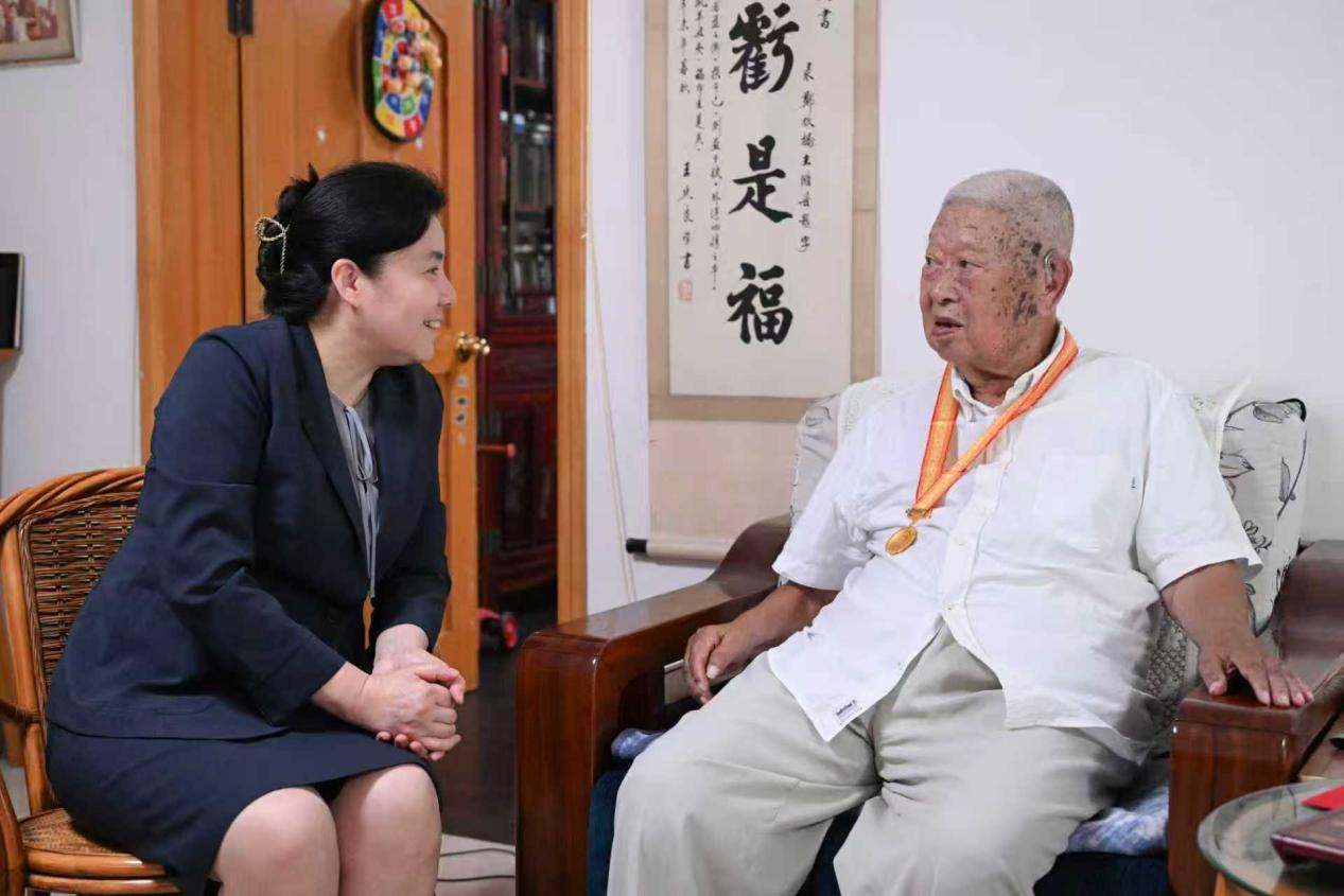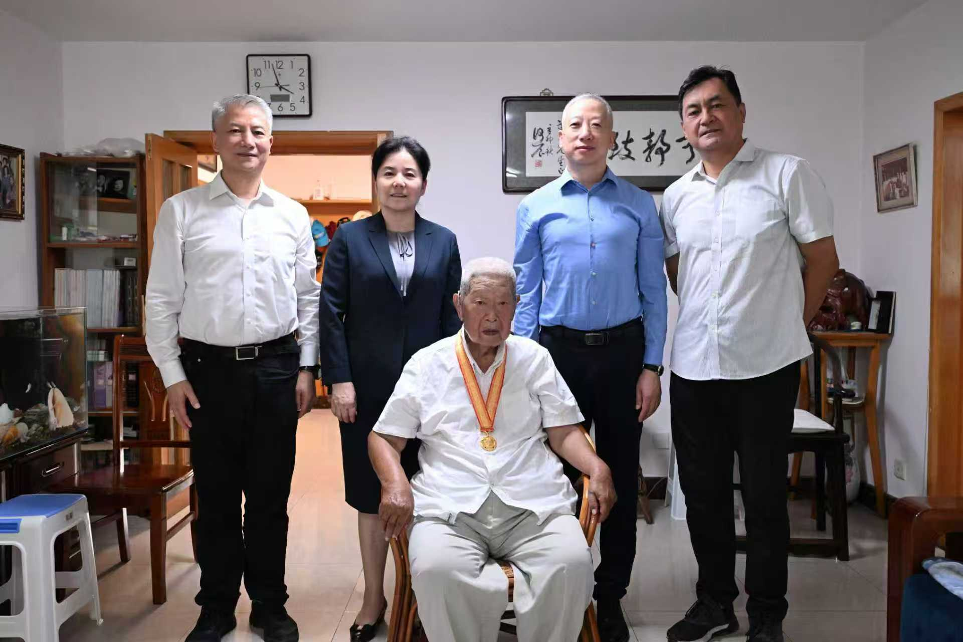 近日,集团党委书记、董事长丁向群代表集团党委看望慰问抗战老战士、中国人民保险公司原党组书记、董事长兼总经理、离休干部秦道夫同志,向他致以崇高敬意和诚挚问候,并为他郑重佩带由中共中央、国务院、中央军委颁发的“中国人民抗日战争胜利80周年”纪念章。丁向群关切询问秦老的身体状况、生活起居和相关需求,并简要介绍集团上半年改革发展情况。集团党委委员、副总裁张金海参加走访慰问。