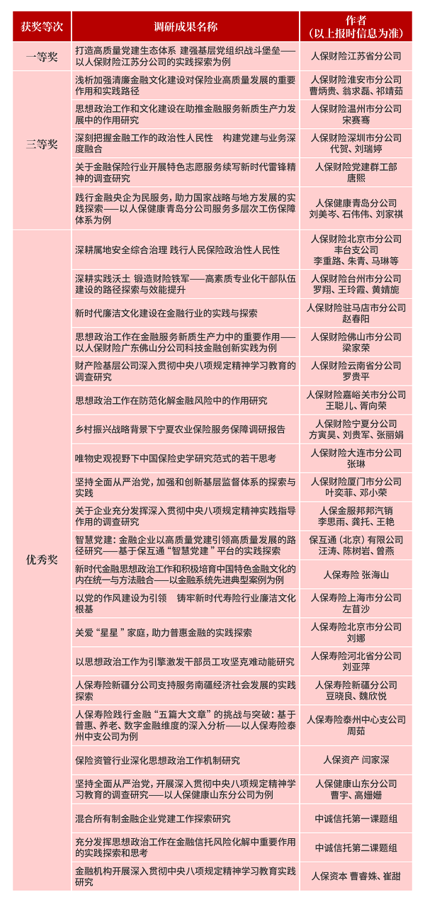 中国人保集团28篇成果荣获2025年度全国金融系统思想政治工作和文化建设优秀调研成果奖