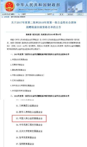 中国人保公益慈善基金会获2018年度第一批公益性社会团体捐赠税前扣除资格