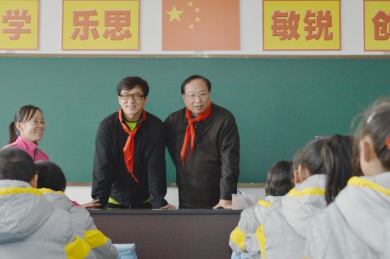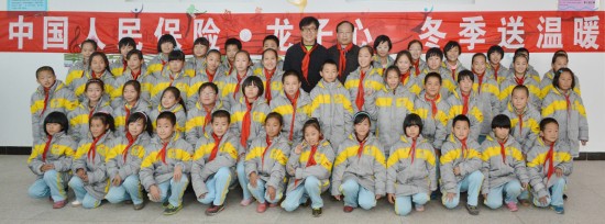 中国人民保险集团副总裁、人保慈善基金会秘书长周树瑞和国际巨星、联合国亲善大使成龙一起到教室看望了正在上课的学生们,勉励他们要珍惜时光,努力学习,掌握文化知识,养成良好品德,锻炼健康体魄,树立远大理想,成长为国家和社会的栋梁之才。随后周总和成龙先生向该校学生捐赠了过冬棉衣,成龙先生还和全体学生一起共唱歌曲《国家》,送温暖活动在欢快温馨的气氛中圆满结束。