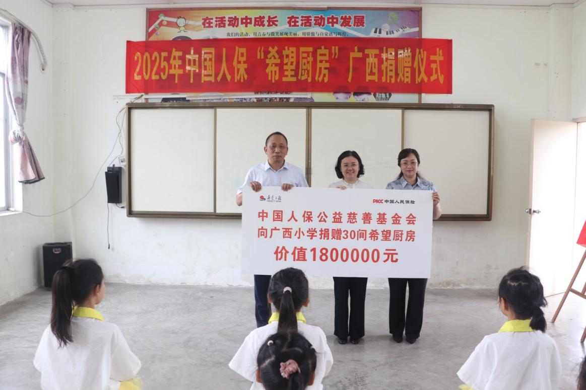 2024年,中国人保公益慈善基金会携手中国青少年发展基金会,在广西援建了10所中国人保“希望厨房”。2025年,项目进一步拓展,新增30所项目校,覆盖南宁市隆安县,百色市田东县、那坡县,贺州平桂区、富川瑶族自治县,河池都安瑶族自治县六个县区,总投入180万元,受益学生人数达到2.3万人。