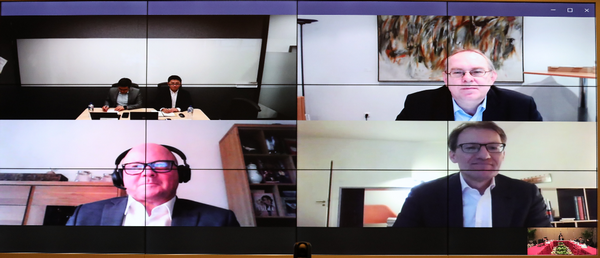 2020年12月3日下午,罗熹董事长在北京与汉诺威再保险集团执行董事会主席冉-雅克·昂绍先生以视频方式举行会谈,双方就深化人保集团与汉再集团的业务合作进行了沟通交流。集团副总裁肖建友,集团业管部以及人保财险、人保再保险相关负责人陪同参加会谈。汉再执行董事斯文-阿尔道夫先生、执行董事总经理迈克尔·马克斯先生,以及汉再上海分公司相关人员以视频方式参会。