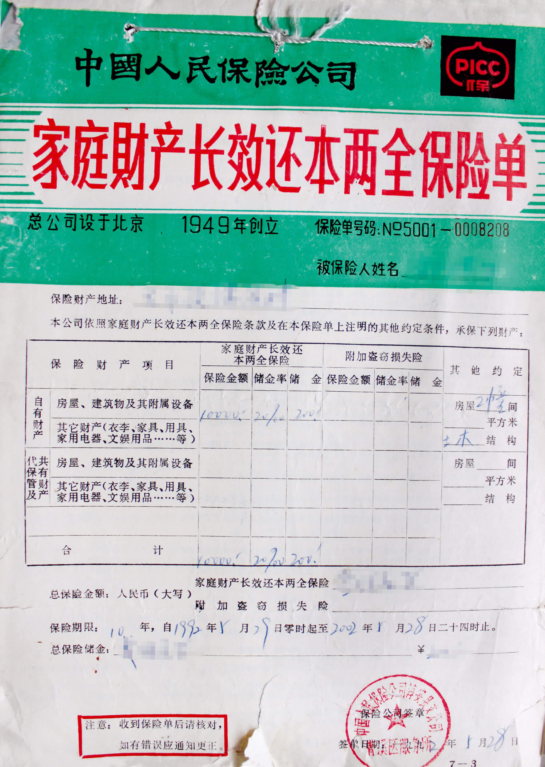 家庭财产长效还本两全保险